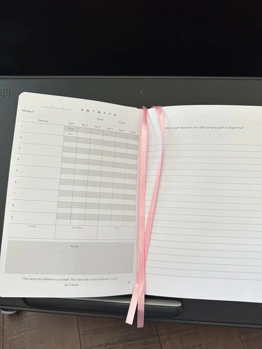 With structured workout logs, guided reflection prompts, and motivational quotes to support both physical progress and emotional growth.